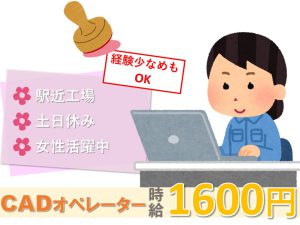 女性活躍中の駅近工場でCADオペレーターのお仕事です♪