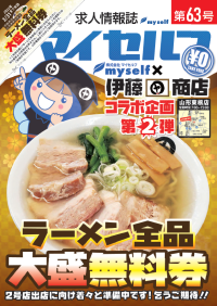 求人情報誌マイセルフに代わり、広報誌よむせるふを創刊しました。今後は求人情報のみの掲載に留まらず、山形の暮らしに役立つ生活+求人情報誌として充実の内容を隔月発行し、下記の店舗で無料配布いたします。 今月の特集ページはマイセルフの事業部紹介、裏表紙のイベントカレンダーでは山形県内の夏のイベントを紹介しています。夏休みの旅行や思い出作りに、ぜひご活用ください! |