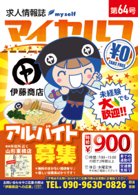 求人情報誌マイセルフに代わり、広報誌よむせるふを創刊しました。今後は求人情報のみの掲載に留まらず、山形の暮らしに役立つ生活+求人情報誌として充実の内容を隔月発行し、下記の店舗で無料配布いたします。 今月の特集ページは山形の秋の風物詩、芋煮をメインに紹介しています。行楽シーズンの思い出作りに、ぜひご活用ください! |