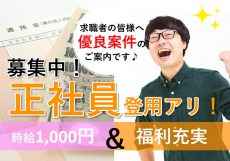 | その他 | 各種保険完備,交通費支給,未経験者歓迎 パート、アルバイトをご希望の方もご応募ください。 |