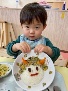 お正月ならではの福笑いも色んなアイデアの顔を作ってはゲラゲラ笑っていた子どもたちです。